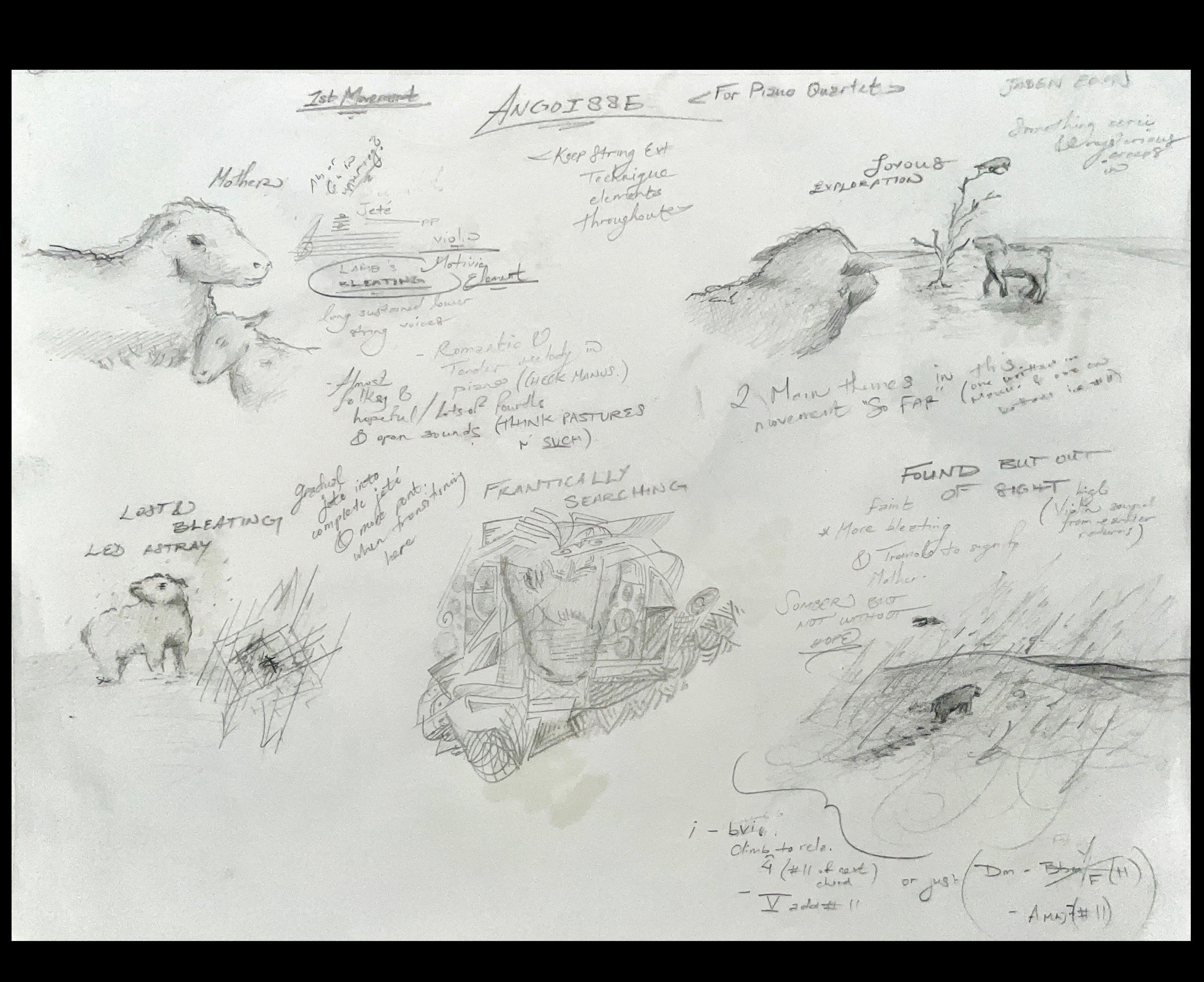 Angoisse (meaning "anguish" in french), is a painting created by August Friedrich Schenck. This painting was the inspiration for a more in depth storyline I created, which lead to a multi-movement piano quartet designed to convey the heartbreak and devastation the mother ewe faces.